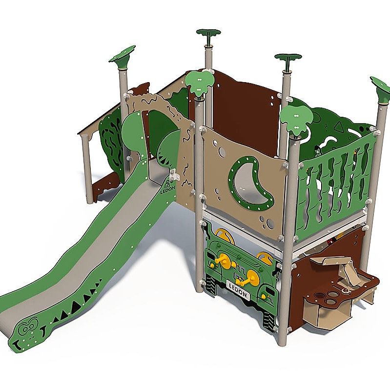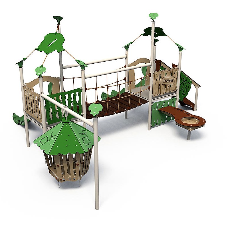 Abenteuer mitten im Dschungel oder auf dem wilden Fluss – Forscherdrang ist gefragt – kleine Entdecker sind unterwegs! LEDON Explore ist die Serie, die zum Forschen, Spielen und Lernen einlädt – mitten in der Natur, mitten im Dschungel, wo alles Mögliche passieren kann. Hütten, Hängebrücken, Lianen und wilde Tiere warten – die Spiellust ist grenzenlos. Alle Geräte sind aus verzinktem Stahl und Polyethylen hergestellt. Es sind mehr als 60 Kombinationen möglich, ergänzt durch passende Zusatzteile wie Federwipper oder Schaukeln.