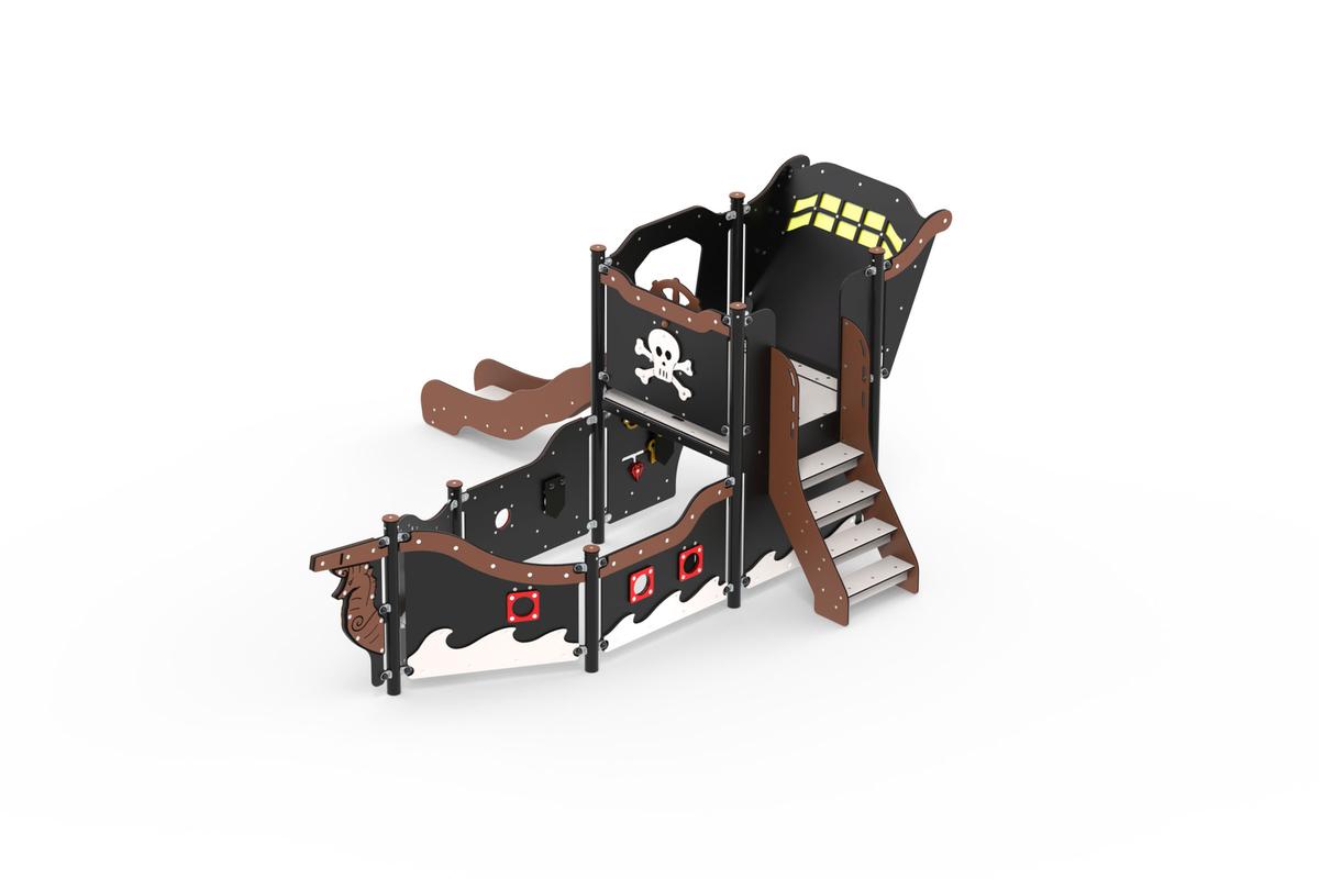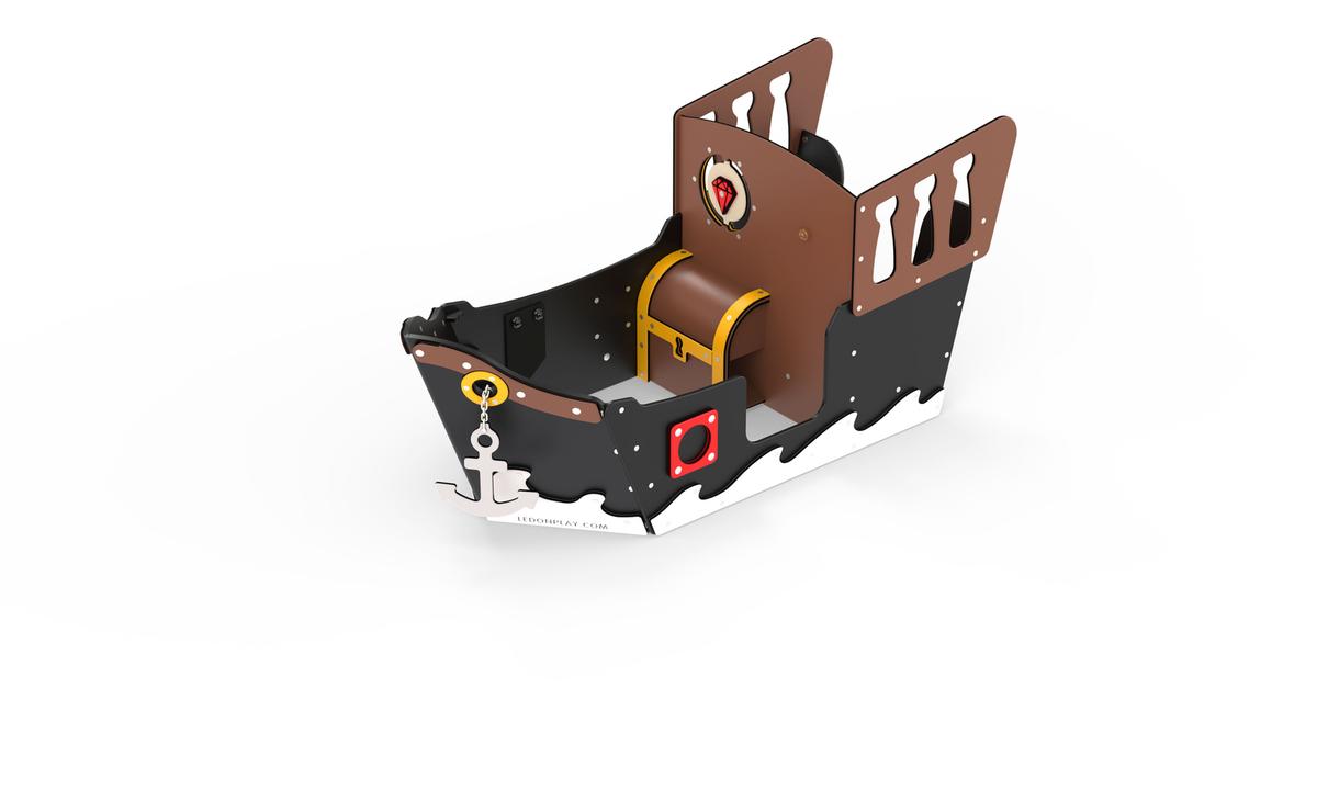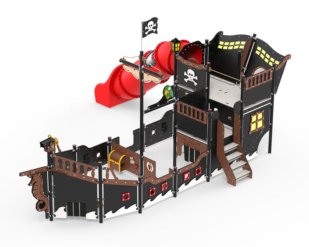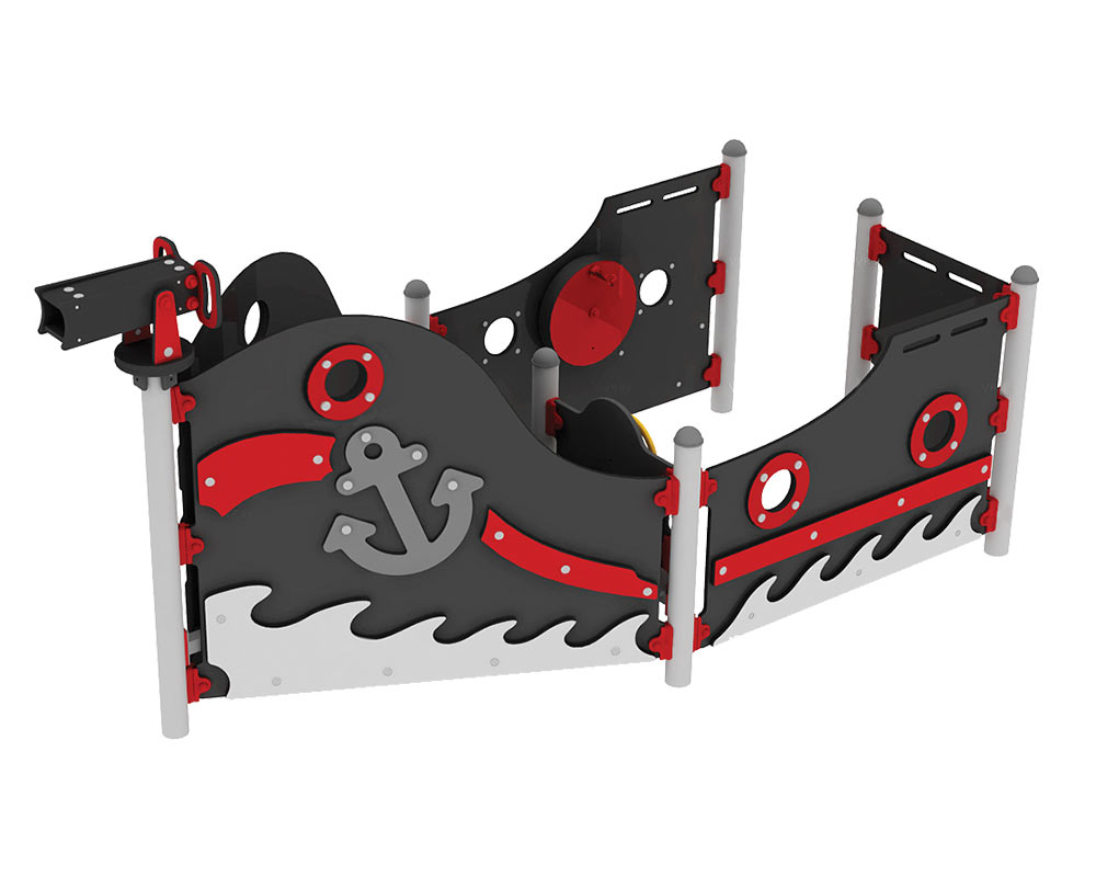 Die Welt der Piraten – spannend und geheimnisvoll! Abenteurer erobern die Meere – für die Kinder immer wieder eine spannende Spiel- und Entdeckerwelt. Die neue Spielgeräte-Serie von LEDON, hergestellt aus Stahl und PE, bietet Spielschiffe von klein bis groß. Verschiedene Anbauteile wie Wackelbrücken, Rutschen oder Netze sichern Spielspaß ohne Ende. Eine Schatzkarte, Diamanten, Schiffsglocke, Anker, Kompass, Fernrohr, Steuerrad und viele weitere Details fördern die Fantasie und lassen keine Langeweile aufkommen. Ergänzt werden die Spielschiffe durch einzeln stehende Kleingeräte. Damit entsteht eine komplette Themenwelt für Ihren Spielplatz. Die eingesetzten Materialien und eine solide Verarbeitung garantieren eine lange und wartungsarme Nutzungsdauer.
